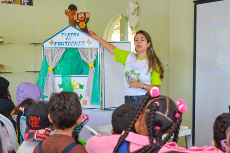 Por meio de um teatro de fantoches, eles aprenderam sobre a importância de cuidar do meio ambiente, sobretudo, de preservar a biodiversidade. “Dessa forma lúdica, os alunos aprendem brincando, participam, interagem e, principalmente, se sentem parte. E é isso o que a gente quer: através da atividade lúdica, trazer o conceito do que é meio ambiente, do que é sustentabilidade e deles serem crianças ecológicas”, destacou a técnica ambiental da Semma, Lucinéia Soares.