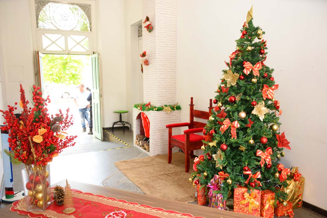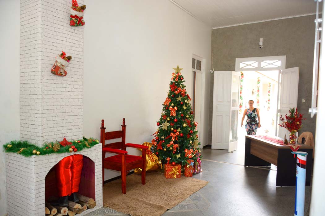 Quem esteve na sede da Prefeitura Municipal nesta quarta-feira (7) se surpreendeu com a decoração natalina que chama a atenção de todos logo na entrada. Além da tradicional árvore de Natal, uma chaminé esconde parte do corpo de um Papai Noel, que concluiu sua missão de deixar presentes em diferentes cores e tamanhos.