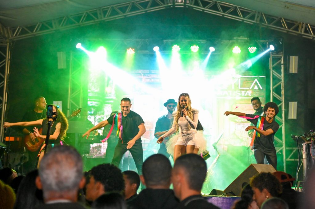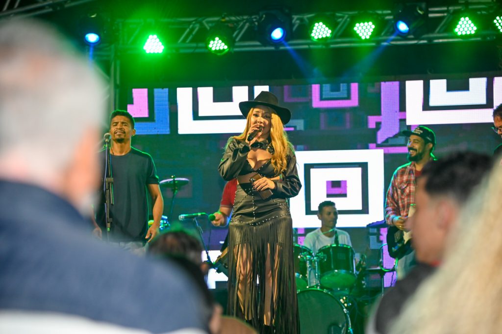 Posteriormente, foi a vez da banda Forró Flor de Tangerina. À frente da banda, a cantora Mayra Porto, estava com uma expectativa bastante alta por tocar na sua amada terra natal. “Estou muito feliz de tocar na cidade em que eu nasci, e tocar o forró, patrimônio histórico cultural brasileiro. Me enche de muito orgulho tocar para todos os conquistenses e me sinto muito valorizada, como filha da terra”, afirmou Mayra, que começou desde cedo no mundo artístico.