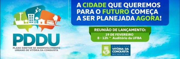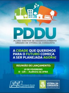 Amanhã, terça-feira (19), acontece à reunião de lançamento do novo Plano Diretor de Desenvolvimento Urbano (PDDU). O evento será realizado no auditório da Universidade Federal da Bahia (UFBA), das 08h às 12h, e toda sociedade civil organizada está sendo convidada para participar. “A cidade que queremos para o futuro começa a ser planejada agora”.