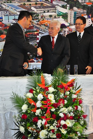 O público lotou o auditório da Escola de Saúde da Família, no Centro Municipal de Atendimento Especializado (Cemae), durante a tarde do primeiro dia de 2013, para acompanhar a solenidade oficial em que foram empossados o prefeito Guilherme Menezes e o vice Joás Meira, além dos vereadores eleitos e dos secretários municipais.