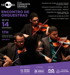 Com direção do maestro João Omar de Carvalho Mello, coordenador do Núcleo na cidade, o encontro contará com a participação da Orquestra de Cordas do Núcleo Conquista Criança, Orquestra Conquista Sinfônica, Orquestra Joia do Sertão, Integrantes do Núcleo Cidade Sol (Jequié), Conjunto de Cordas da Alfam e de músicos locais convidados.