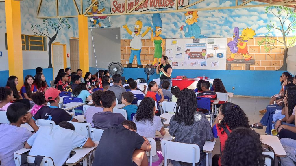 Já com os alunos do 4º ao 9º nono ano, o tema foi sobre bullying, suas formas e consequências, tanto para quem sofre, quanto para quem pratica, visando a punição, o que preconiza a lei de combate com penalidades, multas e até mesmo a reclusão de 2 a 4 anos.