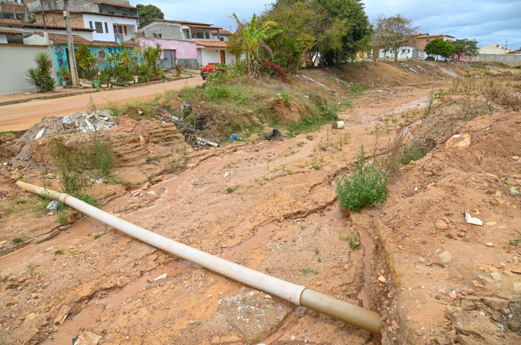 Também inserida na obra de macrodrenagem, está sendo construída a bacia de detenção, que vai receber a água captada pelas tubulações subterrâneas nas ruas do loteamento e liberar, de forma controlada, por outra tubulação, até o canal de drenagem localizado no bairro Santa Cecília. O objetivo desse sistema é evitar alagamentos na parte baixa, como ocorria no passado, quando essa água descia sem nenhum controle de vazão.