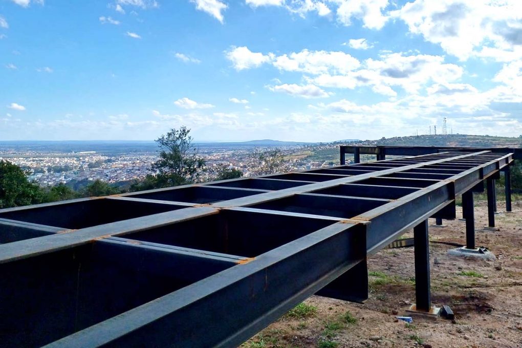 O mirante metálico terá uma área total de 268 metros quadrados, equipada com um piso antiderrapante composto por grades eletrofundidas.