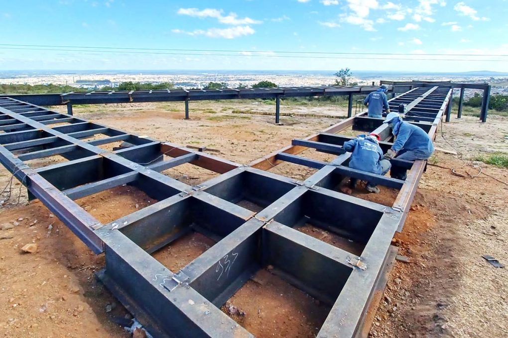 Segundo a Emurc, mais de 60% da estrutura do mirante já está pronta. A fundação, que foi feita à base de concreto e ferro, a fim de sustentar os pilares, foi concluída recentemente. Agora, a obra continua com a soldagem das barras metálicas, que serão responsáveis por dar forma à edificação.