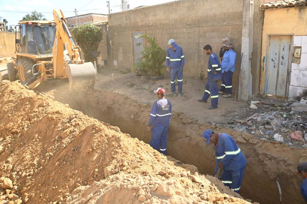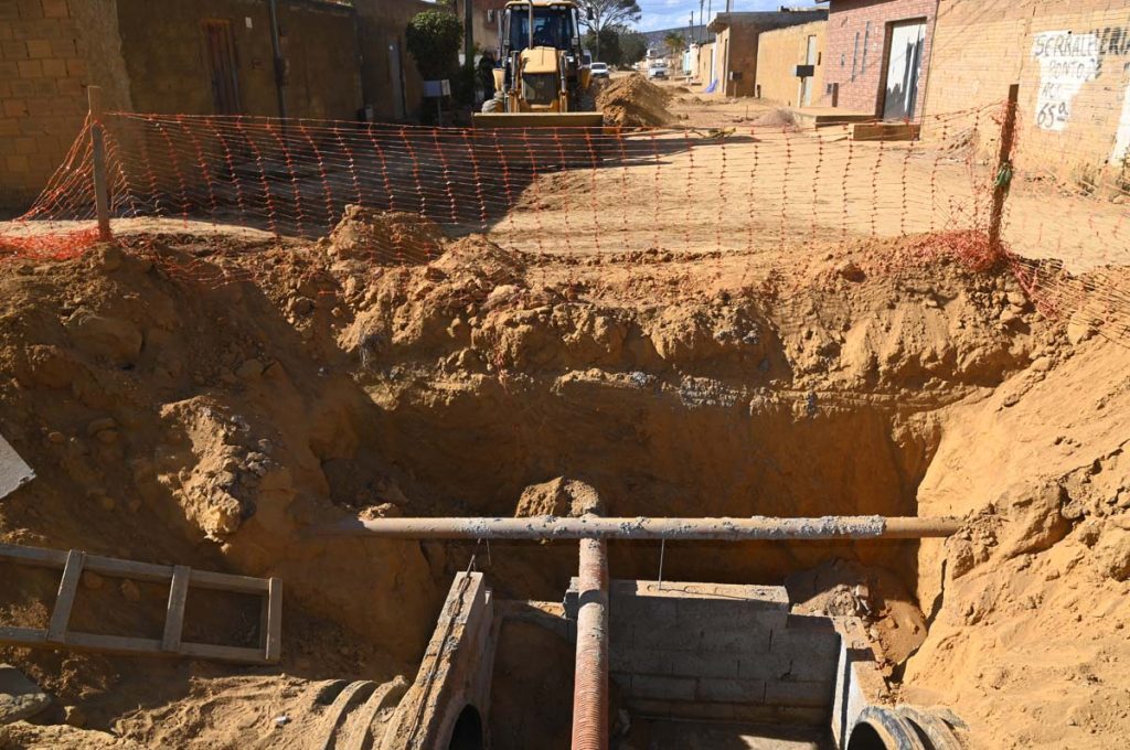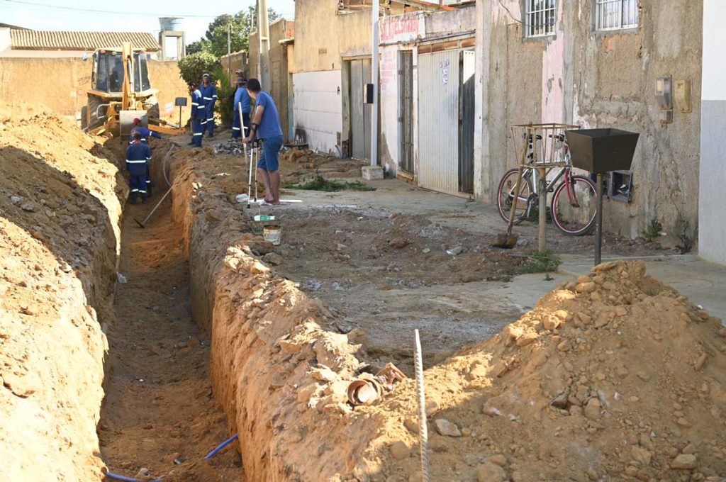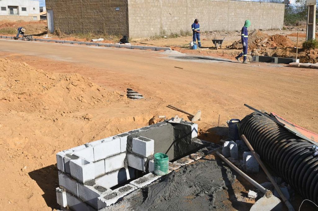 O cronograma de execução no loteamento já totaliza 71% do previsto nas 12 vias, das quais quatro já se encontram pavimentadas. Nas demais, estão sendo executados serviços de terraplanagem e instalação dos pontos de captação.