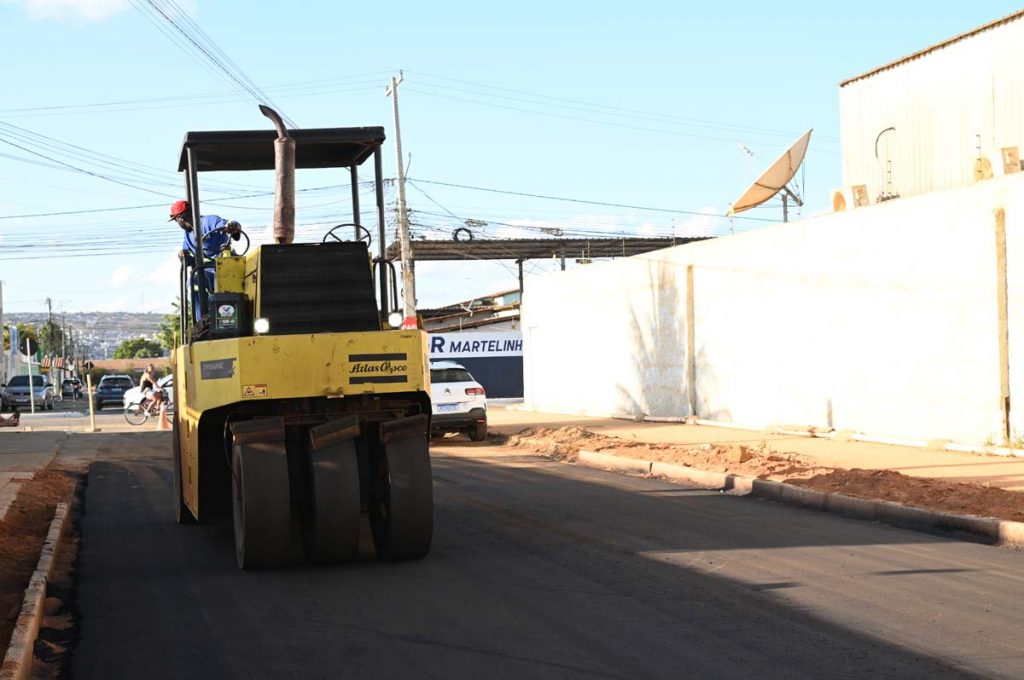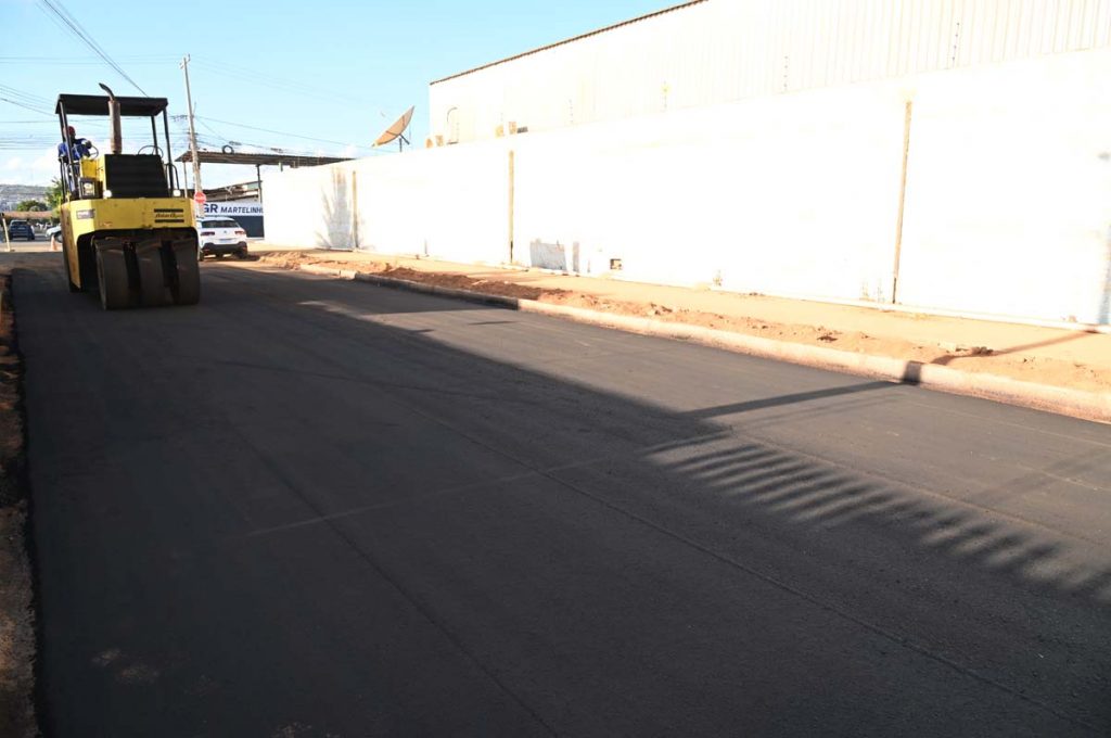 As 11 vias do cronograma no loteamento já estão sendo asfaltadas. As equipes trabalham na instalação dos últimos pontos de captação (bocas de lobo) do sistema de drenagem e no assentamento de meio-fio. Todas as ruas já se encontram devidamente regularizadas e imprimadas, representando 68% da execução prevista.