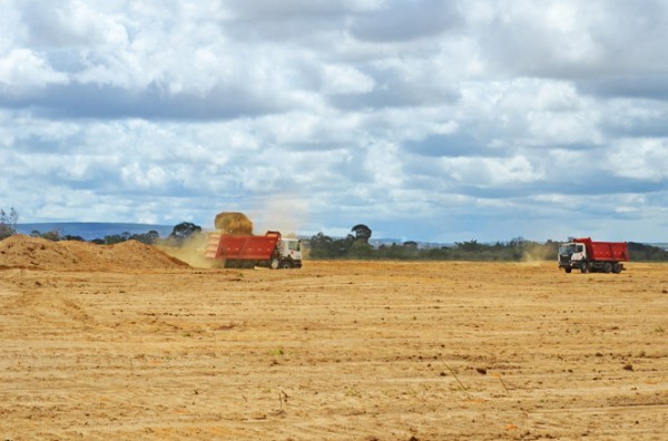 Com a garantia da Licença de Instalação, concedida na última sexta-feira, 11, pelo Instituto do Meio Ambiente e Recursos Hídricos da Bahia (Inema), por meio da Portaria nº 7316/14, continuam em pleno andamento as obras iniciais do novo aeroporto de Vitória da Conquista. O terreno de 61,6 hectares, no povoado de São José e às margens da BR-116, já é visivelmente um canteiro de obras. Operam no local oito caminhões, duas pás carregadeiras e três tratores de esteira, a serviço do consórcio Top/Paviservice.