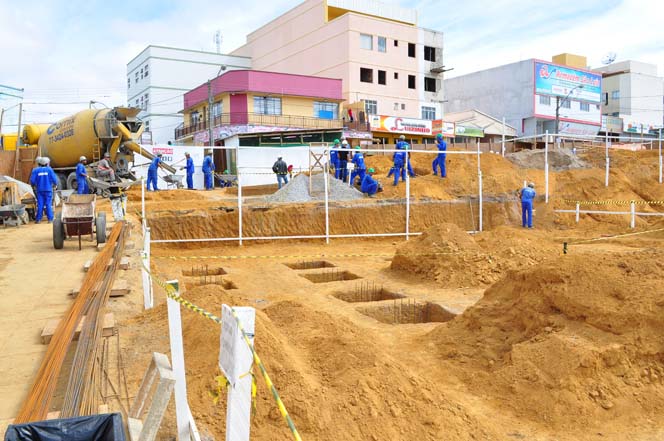 A construção do Centro de Comércio Popular de Vitória da Conquista mostra avanços no seu segundo mês de obras. Nesta terça-feira, 16, o serviço de terraplanagem está sendo concluído e os operários vão passar para a etapa de execução das fundações. Daqui a duas semanas as peças da estrutura que darão sustentação ao prédio serão concretadas no Centro Industrial.