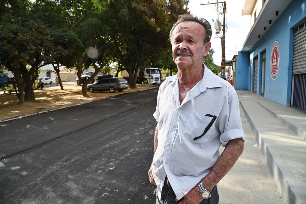 O Sr. Aurelindo Gomes, de 84 anos, fez questão de vir da sua rua até a via principal para observar o trabalho dos homens e das máquinas.