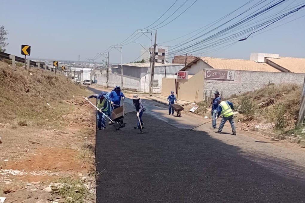 Depois de remover a camada anterior de asfalto, danificada pela força das chuvas, a base foi refeita. Agora, a equipe finaliza a aplicação da nova camada de material asfáltico.
