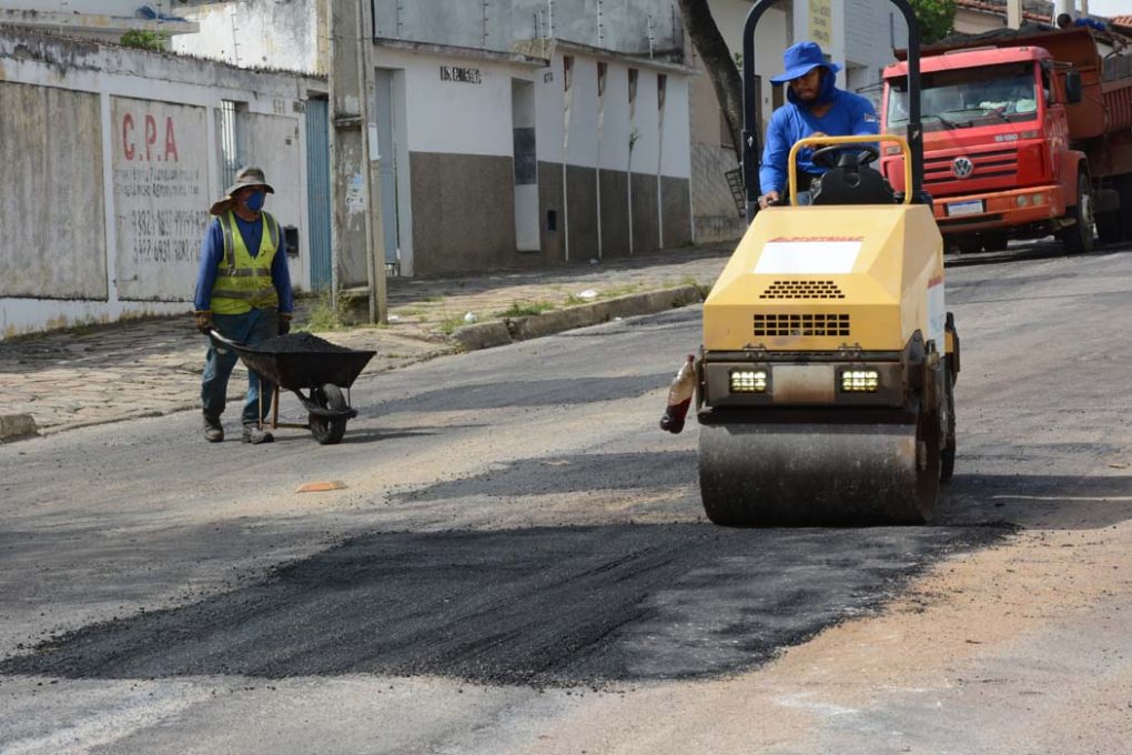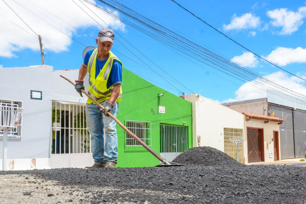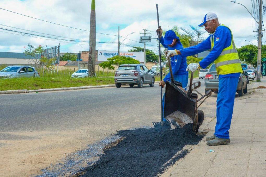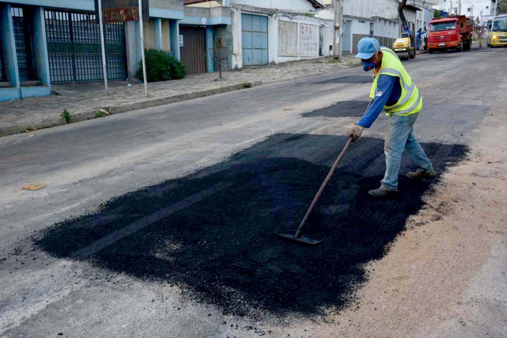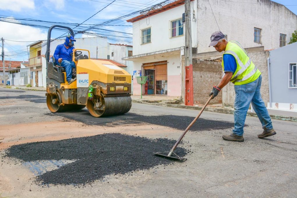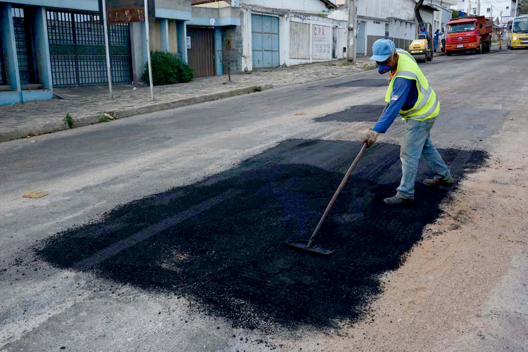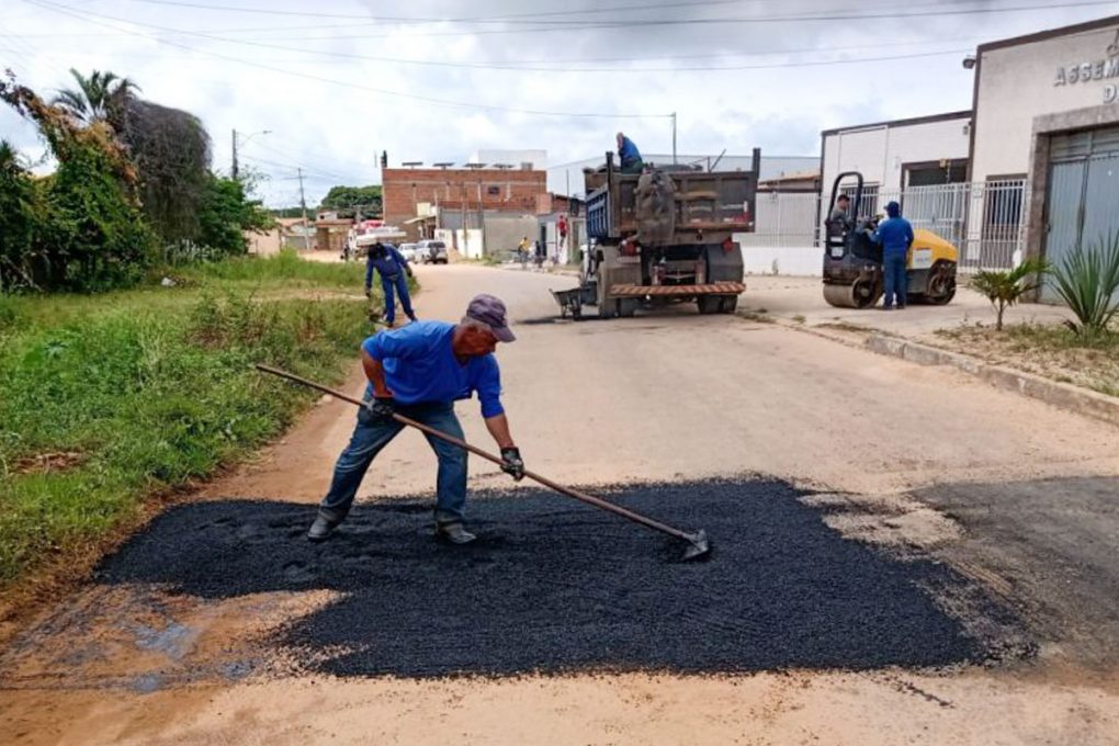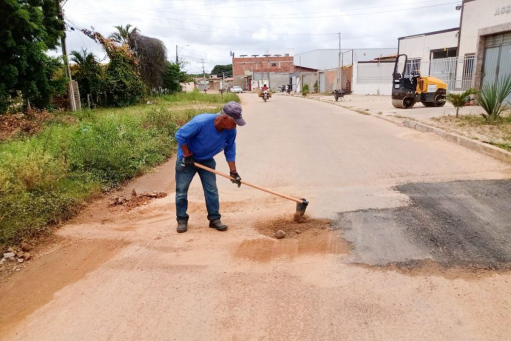 Servidor da Emurc cobre buracos na Rua Clemente Brito, no bairro Recreio