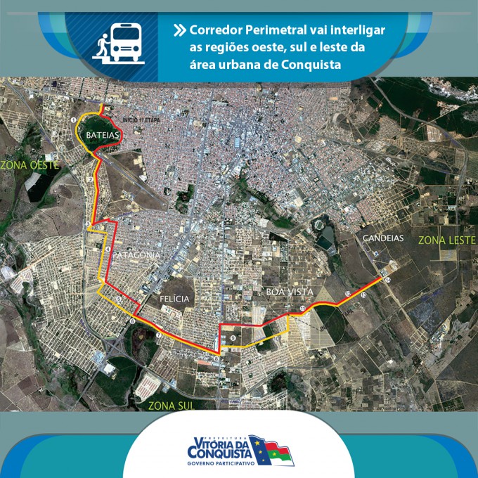 O projeto do Corredor Perimetral, que interligará as regiões oeste, sul e leste do perímetro urbano de Vitória da Conquista, está a cada dia mais próximo de se tornar realidade. Nesta quarta-feira, 11, a Administração Municipal se reunirá com representantes da Caixa Econômica Federal, vereadores, lideranças comunitárias e imprensa para a assinatura da ordem de serviço, que autorizará o início das obras. O ato acontecerá no Salão Nobre do Gabinete Civil, às 11 horas.