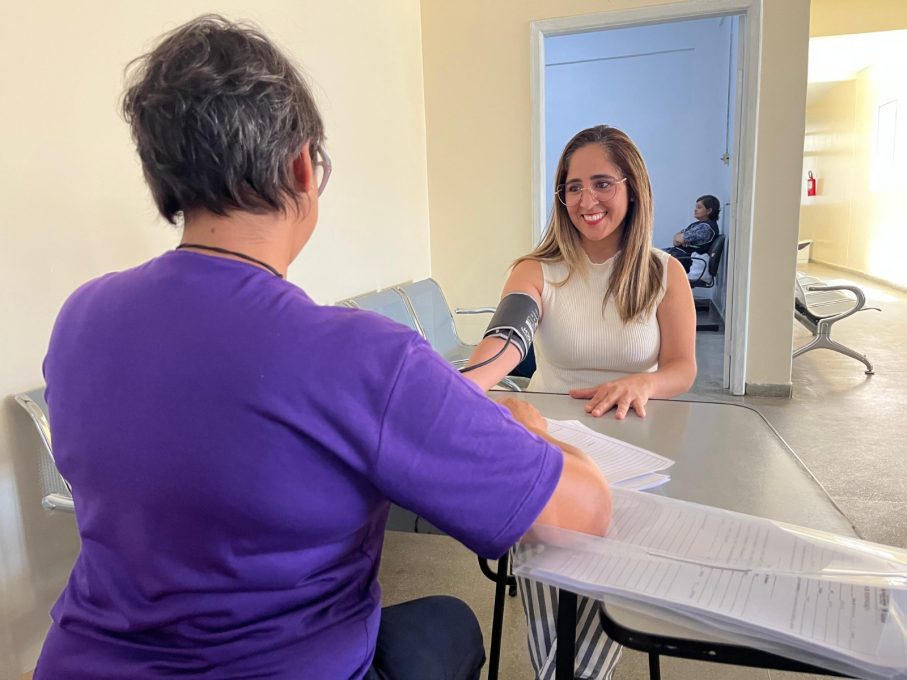 Joseane Santos, em consulta com a equipe de Enfermagem