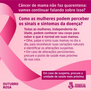 Conteúdo de Prefeitura Municipal de Vitória da Conquista – PMVC disponível em https://www.pmvc.ba.gov.br/outubro-rosa-unidades-de-saude-intensificam-as-acoes-de-prevencao-e-diagnostico-precoce-do-cancer-de-mama/whatsapp-image-2020-10-16-at-10-47-15/ acessado em 05/10/2025 08:39:51