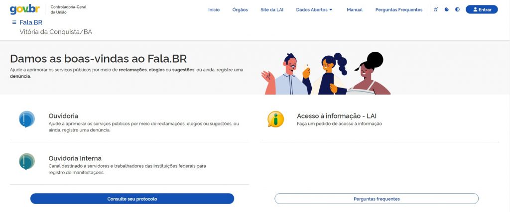 Ou se preferir realizar sua solicitação de forma eletrônica (Online) acesse:  Fala.br/VitoriadaConquista