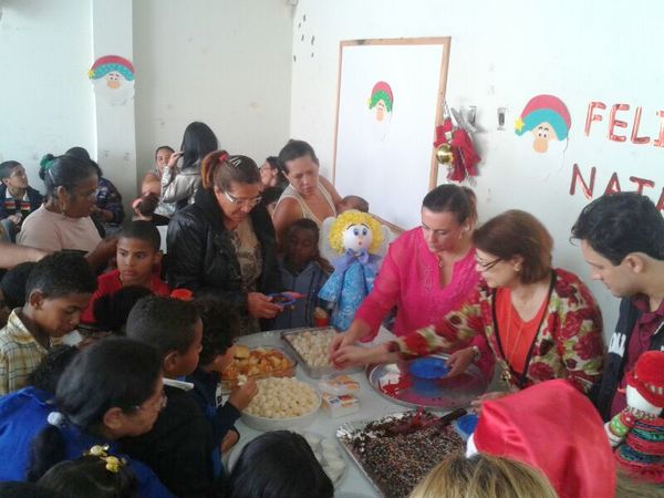 Para celebração do ano que já está terminando, foi oferecido um café da manhã especial, com bolo confeitado, biscoitos e sucos. Um cardápio variado que agradou a todos, principalmente às crianças, que também aproveitaram para se divertir com o papai e a mamãe Noel, que distribuíram doces e pipocas para todos.