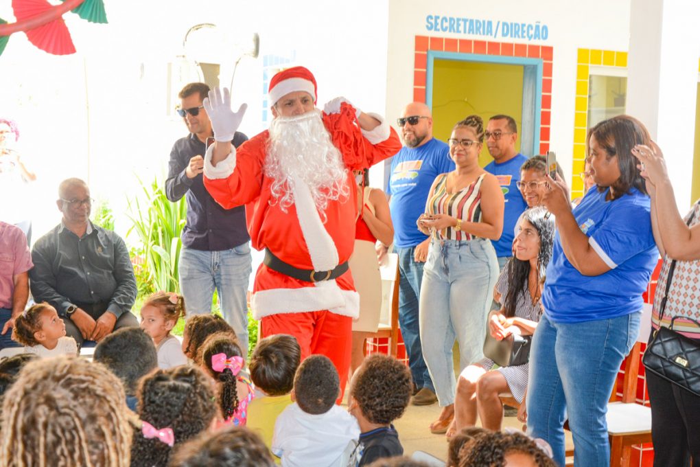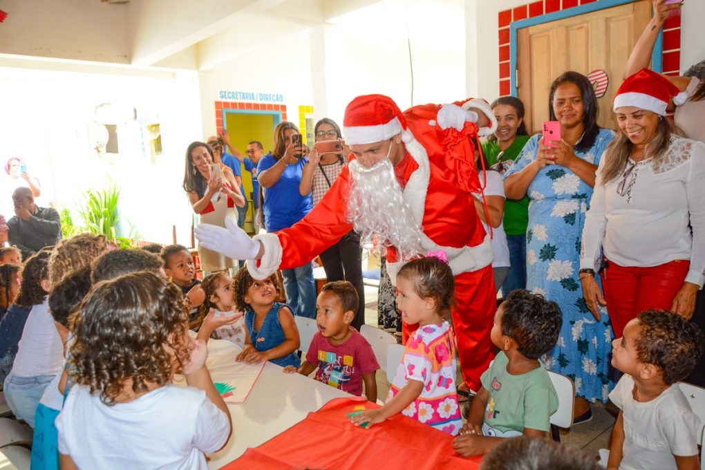 Nesta terça-feira (12), em pleno clima natalino, as crianças do Centro Municipal de Educação Infantil Professor Antônio de Moura Pereira foram surpreendidas pela visita do Papai Noel dos Correios, que, em parceria com a Prefeitura de Vitória da Conquista, entregou cerca de 100 presentes na unidade escolar.