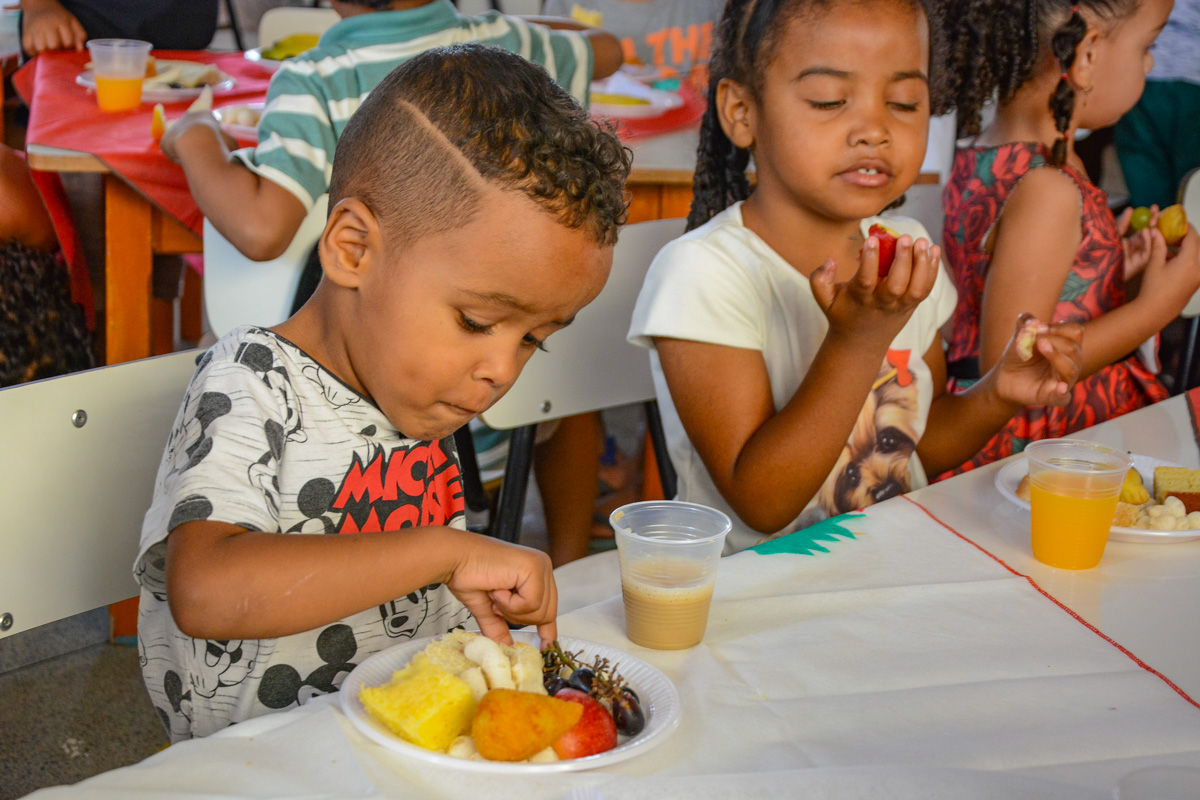 Enquanto esperava o bom velhinho chegar ao bairro Miro Cairo, a criançada se divertiu e tomou um delicioso café da manhã com o sorriso no rosto. O pátio da creche, onde o evento foi realizado, recebeu uma decoração especial, com árvore de Natal, presentes e a típica cadeira do Papai Noel.