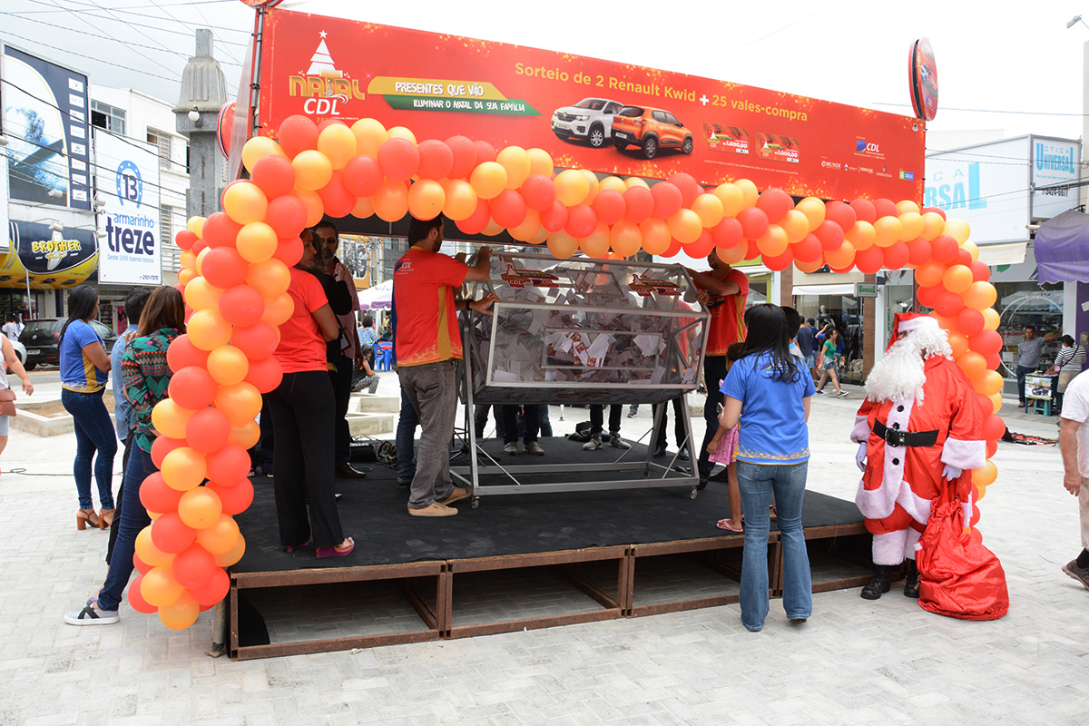 Sorteios – O primeiro sorteio da campanha “Natal CDL, Presentes que vão iluminar o Natal da sua Família” aconteceu neste sábado, 2, e contou com a presença do prefeito Herzem Gusmão. Foram selecionados 10 cupons de mil reais que, após serem sorteados, preenchiam todas as regras. Mais sorteios acontecem nos dias 16 de dezembro – mais 10 cupons de mil reais serão sorteados -, e 23 de dezembro, quando acontecerá o sorteio mais esperado: cinco cupons de mil reais e dois carros 0 km.
