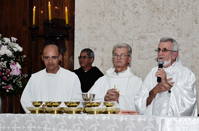 A missa foi celebrada pelo Frei Geraldo, que falou sobre a alegria que os fiéis devem ter ao pregar o evangelho, mesmo em momentos de dificuldade. Também comentou sobre o trabalho que vem sendo feito na a cidade, por meio dos poderes Executivo e Legislativo. “Vamos continuar com as nossas orações pedindo sempre o melhor para nossa cidade”, disse.