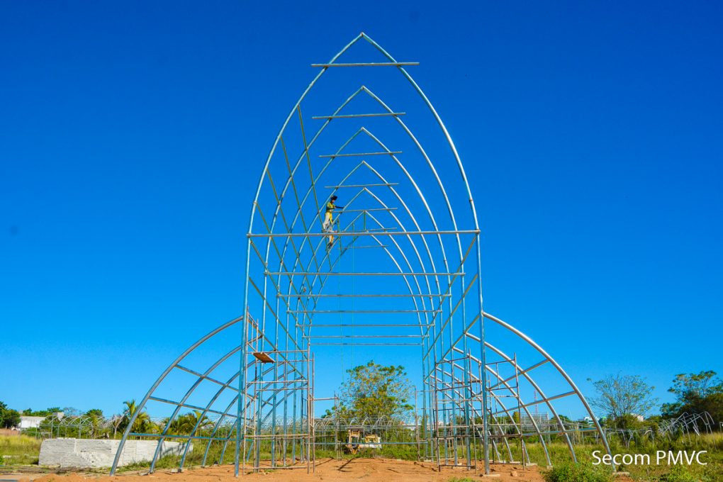 Parte do projeto urbanístico do Parque Ambiental do Rio Verruga, a Catedral de Flores está com a estrutura metálica quase pronta, faltando apenas instalações elétricas, paisagismo e o piso de cimento do entorno. No momento, está sendo soldado o contraventamento, estrutura responsável pela fixação lateral dos componentes.