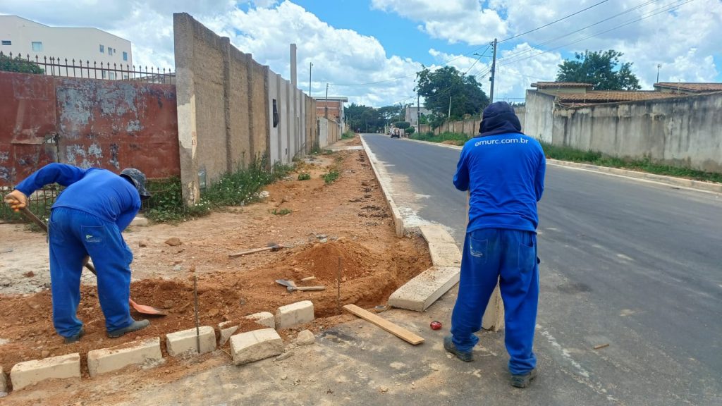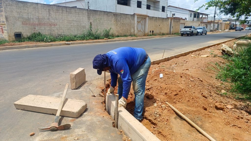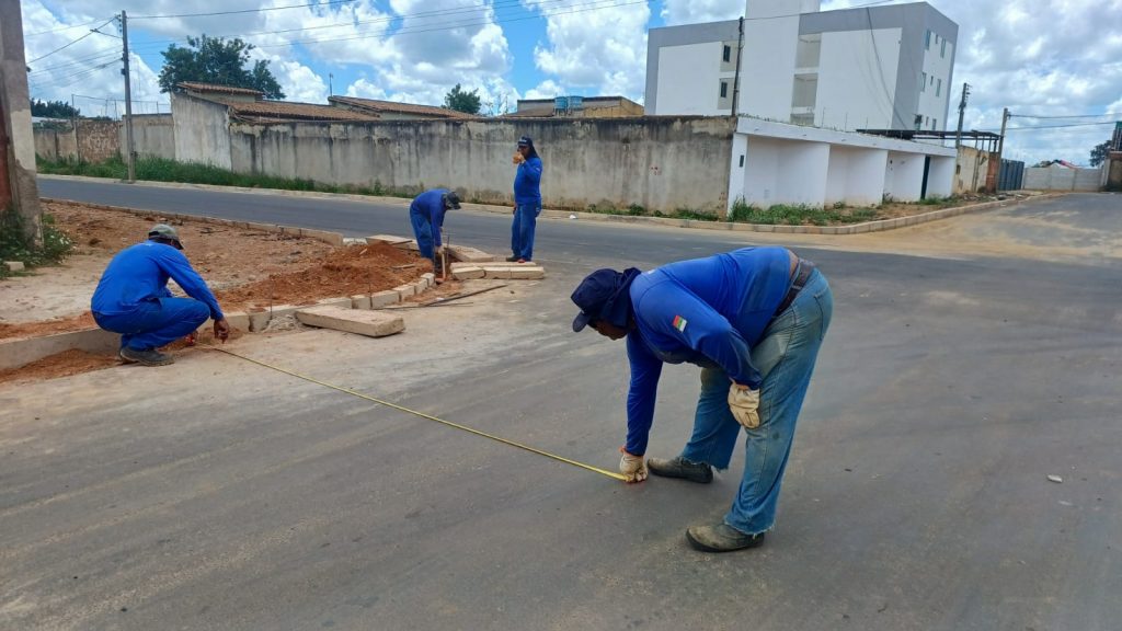 A pavimentação asfáltica no loteamento Bela Vista, no bairro Boa Vista, está na etapa final. Os trabalhadores da Emurc, empresa responsável pela execução da obra, está realizando o assentamento de meio-fio na Avenida D.