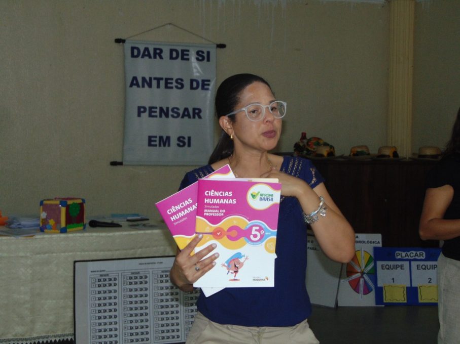 Lara explica que nesta formação são apresentadas informações destas avaliações, além de mostrar, trazer vivências relacionadas ao material do Aprova Brasil, que é o material voltado para simulados que tratam de questões baseadas nas avaliações. “Então é uma forma também de estar auxiliando estes alunos a preencher o gabarito, a ler as questões, acrescentando o material voltado para Ciências Humanas e Ciências da Natureza”.