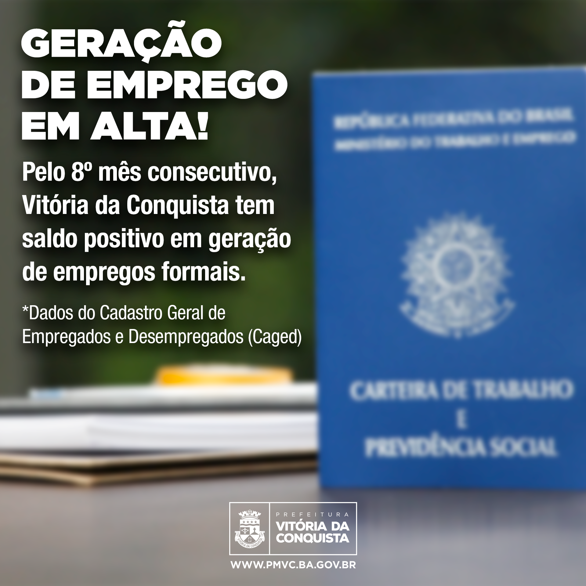 Mesmo com a pandemia, Vitória da Conquista mantém, desde julho do ano passado, tendência de crescimento na geração de empregos formais. Em fevereiro deste ano, o município apresentou o melhor resultado dos últimos oito meses, com saldo de 902 empregos: foram admitidos 2.466 trabalhadores e trabalhadoras com carteira assinada e foram desligados 1.564. Isso representa um crescimento de 34% em comparação a janeiro, cujo saldo foi 671, e 51% acima de fevereiro do ano passado.