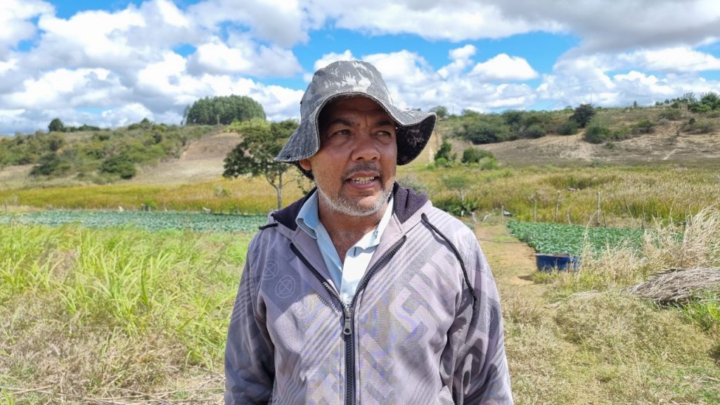 Mais à frente, em sua propriedade de 14 hectares localizada às margens da BR-116, no povoado de Itaipu, quem já vive exclusivamente do que produz é o agricultor familiar Givanildo Teixeira. Nas terras da família, ele mantém uma produção diversificada abrangendo a pecuária e o plantio de hortaliças, palmas e mandioca. Afinal, como ele próprio diz: “Na roça, tem de ter de tudo um pouco”.