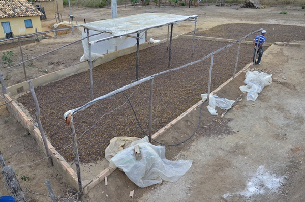 ‘Mais compradores’– A mudança nos ganhos, antevista pela agricultora, virá a partir da mudança na forma como os pequenos agricultores lidam com o café, antes de comercializá-lo. Ela própria é um exemplo do processo artesanal utilizado na região. Após colher os frutos, ela apenas os espalha no solo e os deixa secando ao sol. Quando estão suficientemente secos, ela os apanha e os submete ao beneficiamento, desde que haja por perto algum conhecido que possua uma máquina que realize esse procedimento. Em seguida, resta ensacá-los e esperar que algum comerciante – geralmente de Vitória da Conquista – vá até a região para comprá-los. Ou, então, pagar por um frete que leve as sacas para serem vendidas na cidade.
