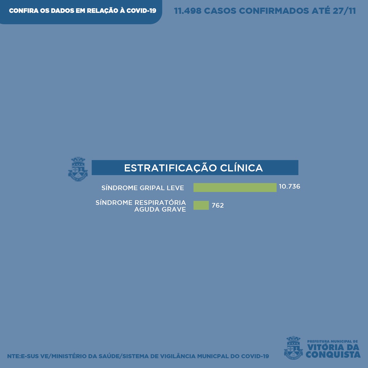 Desse total, 4.906 são do sexo masculino; enquanto 6.592 são do sexo feminino. Além disso, 1.212 das ocorrências de Covid-19 na cidade são em trabalhadores da saúde.