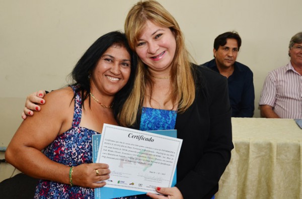 Os alunos receberam certificados dos cursos de assistente administrativo, informática e manutenção, eletricista e pedreiro em acabamento