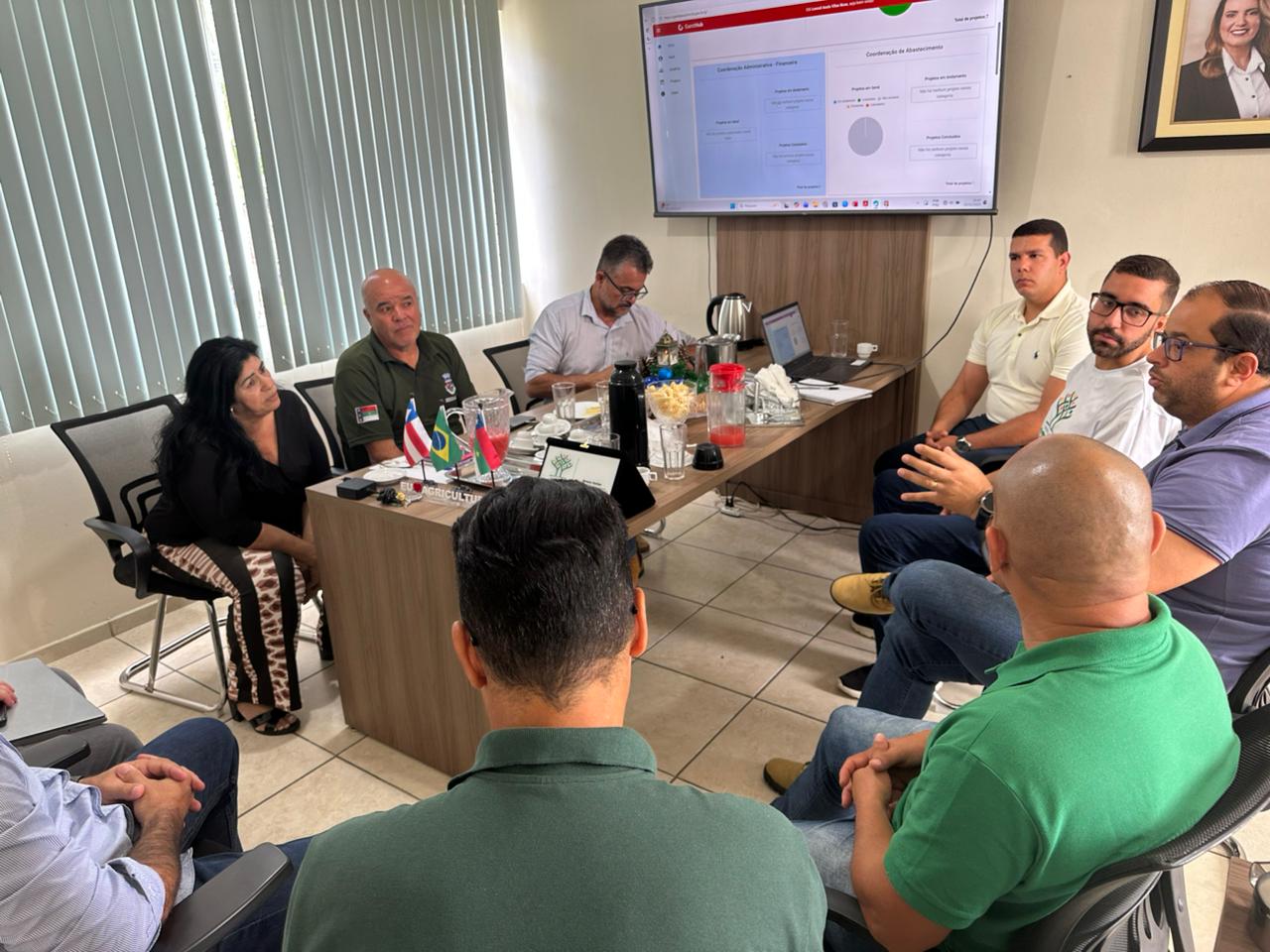 Com o objetivo apresentar as funcionalidades da Plataforma GanttHub, uma ferramenta de planejamento desenvolvida pelo Governo Municipal para auxiliar no monitoramento e execução de projetos em tempo real, o secretário Breno Farias, titular da Secretaria Municipal de Desenvolvimento Rural (SMDR), se reuniu na última terça-feira (2) com os coordenadores Gustavo Barros, Osmário Lacerda, Augusto Filho, representantes das subprefeituras de José Gonçalves, Inhobim e Bate-Pé, e com os coordenadores Joana D’arc, Eduardo Castro, Arlindo Rebouças, Daniel de Freitas, Rildo Querino e Cely Neto.