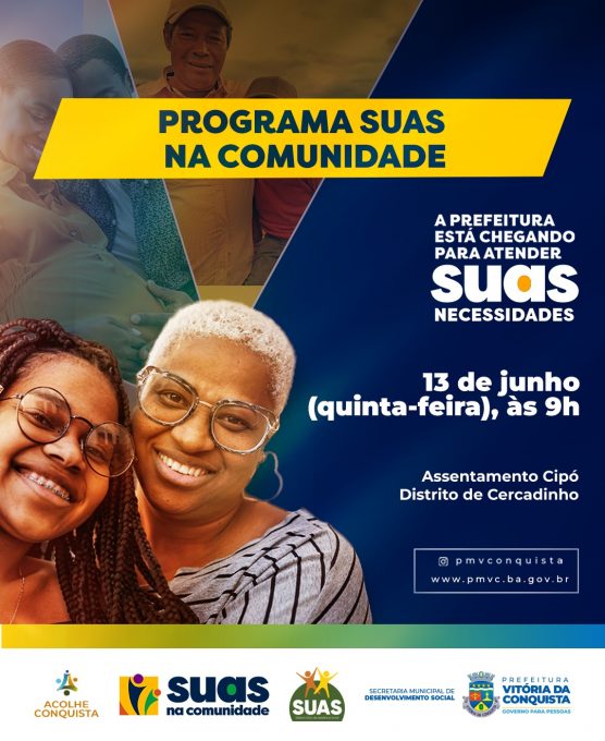 O Suas na Comunidade é um programa municipal organizado pela Secretaria de Desenvolvimento Social (Semdes), em articulação com outras secretarias do Governo e em parceria com entidades públicas e privadas, a exemplo da Defensoria Pública da União (DPU). Por meio dessa iniciativa, a Prefeitura de Vitória da Conquista já realizou mais de 6.200 atendimentos para moradores da Zona Rural e dos condomínios do Minha Casa, Minha Vida.