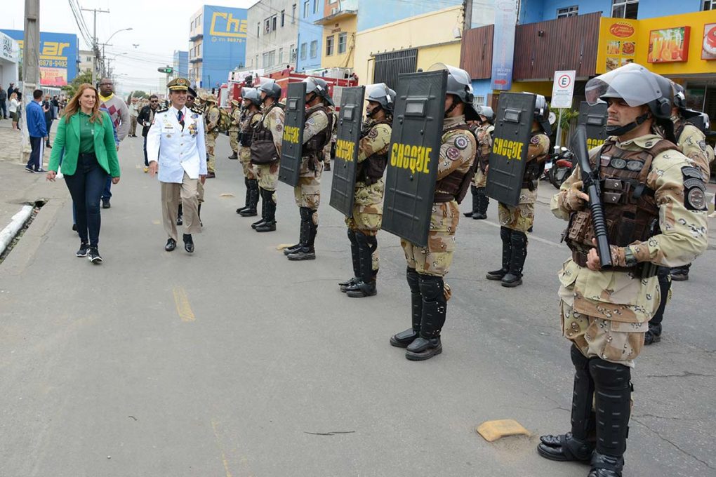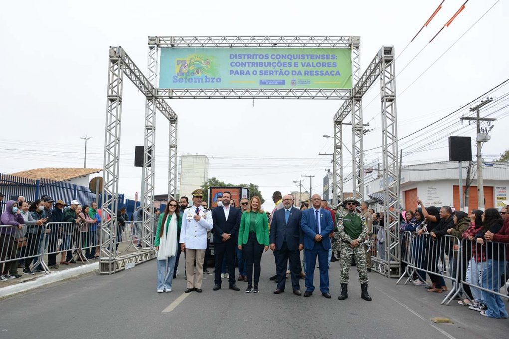 Este é o primeiro ano da prefeita Sheila Lemos em uma celebração de 7 de Setembro. Ela iniciou sua participação ainda no 9º Batalhão de Ensino, Instrução e Capacitação (9º Beic), caminhando junto com os comandantes da PM em Vitória da Conquista até a Avenida Brumado, onde estava a concentração dos grupamentos militares que, tradicionalmente, abrem o desfile. Lá, a prefeita fez a revista à tropa e recebeu uma homenagem do pequeno Arthur Gusmão, neto do ex-prefeito Herzem Gusmão, convidado para participar da ala infantil da Guarda Municipal.