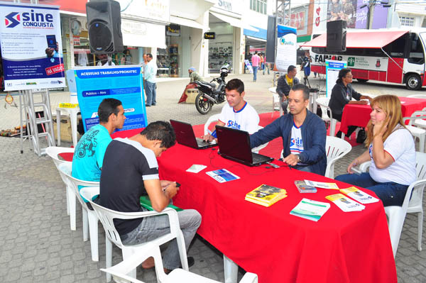 Também estão disponíveis os serviços prestados nos postos do Sine Conquista e do Qualifica Conquista, como habilitação ao seguro-desemprego, qualificação social e profissional e intermediação de mão de obra. Hermes Pereira, juntamente com seu primo, foi um dos que aproveitaram os serviços do Sine. “Ontem eu passei pelo local e pedi informações aos atendentes. Hoje eu resolvi voltar, gostei bastante do atendimento. Estou em busca de uma oportunidade de emprego e nada melhor do que fazer isso na semana do trabalhador”, conta satisfeito.