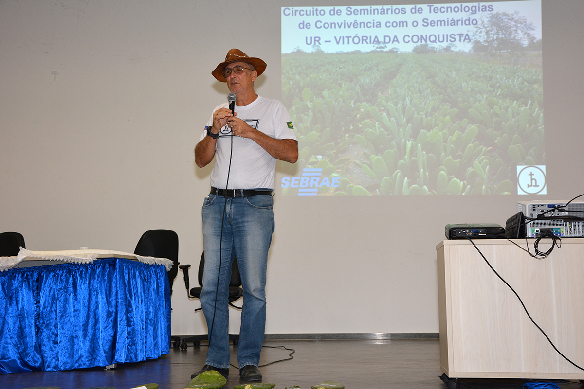 Com significativa aceitação pelos produtores rurais de Vitória da Conquista, a palma forrageira foi o tema principal do Seminário de Tecnologias de Convivência com o Semiárido promovido pela Prefeitura Municipal, em parceria com Sebrae, nesta quarta-feira, 30, no auditório da Universidade Federal da Bahia (Ufba).