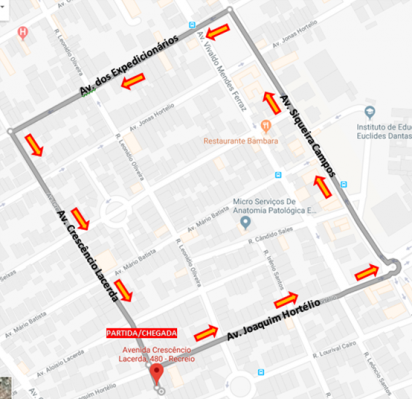 O cortejo partirá às 15h da Avenida Leonídio Oliveira. Então, subirá à esquerda da Avenida Joaquim Hortélio, seguirá a rotatória do Centro de Cultura Camilo de Jesus Lima e passará para a Avenida Siqueira Campos, no sentido da Praça do Gil. Chegando à Praça, descerá a Avenida dos Expedicionários até o encontro com a Avenida Leonídio Oliveira, seguindo até o nº 450. Confira o circuito:
