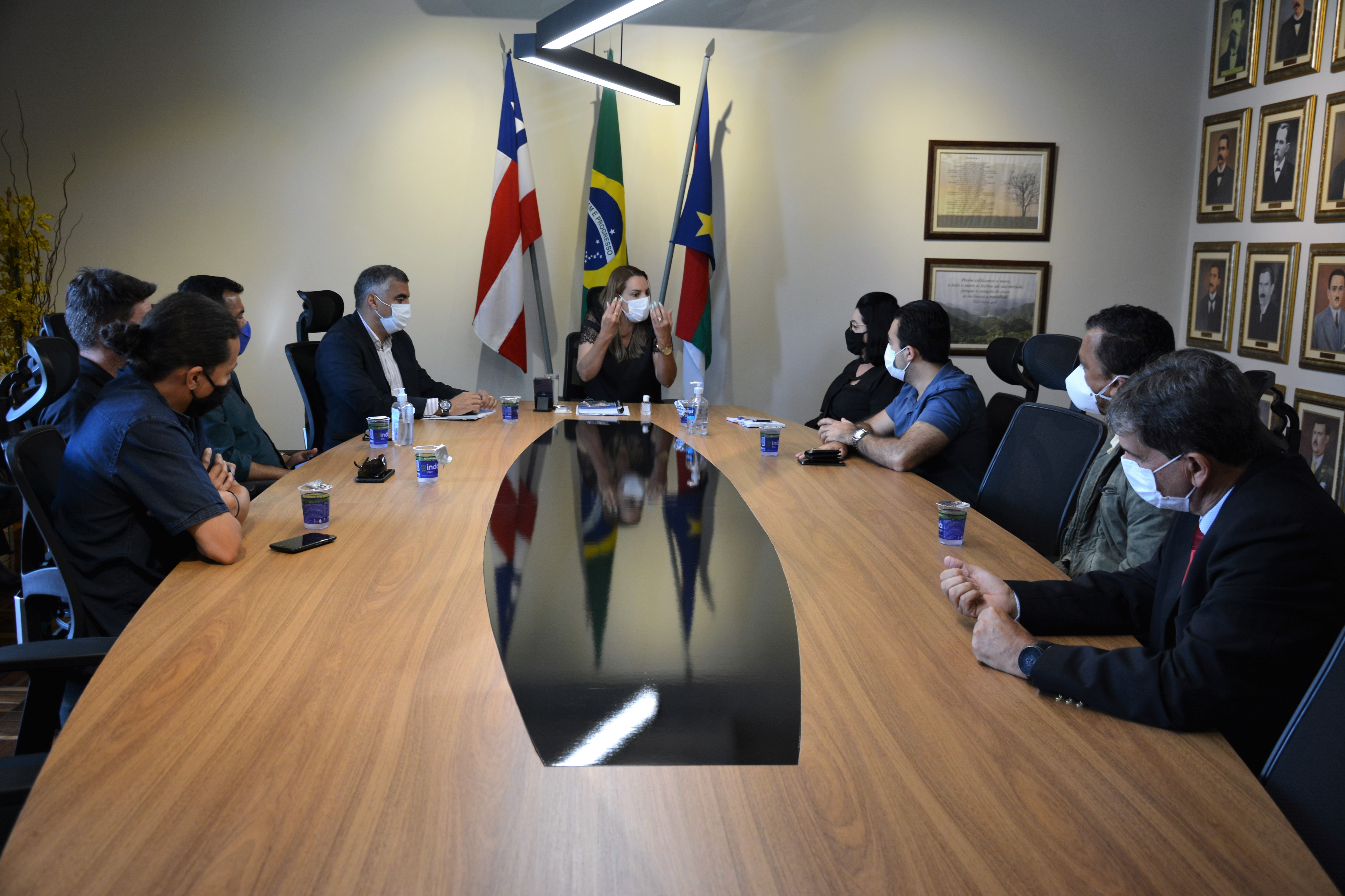 A prefeita Sheila Lemos recebeu, nesta quinta-feira (9), para uma reunião no seu gabinete, a vereadora Lúcia Rocha acompanhada de representantes do transporte coletivo rural e de comerciantes que atuam no Centro da cidade. O encontro teve a participação do secretário chefe do Gabinete Civil, Lucas Dias.