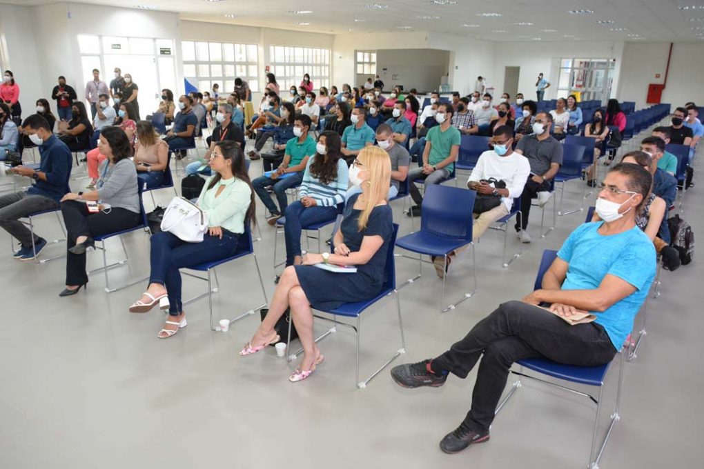 A prefeita Sheila Lemos deu as boas-vindas aos 52 novos servidores contratados pela Prefeitura para trabalhar na Secretaria Municipal de Desenvolvimento Social (Semdes). Ela participou, nesta quarta-feira (14), ao lado do secretário Michael Farias, do segundo e último encontro de acolhimento dos novos servidores, no auditório do Sest/Senat.
