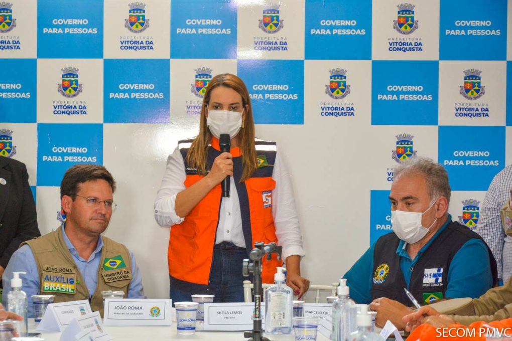 Na mesma reunião, Sheila agradeceu aos ministros e fez questão, também, de enfatizar o apoio de primeira hora do Comando de Policiamento Regional da Polícia Militar, na pessoa do comandante, coronel Ivanildo Silva, ao Corpo de Bombeiros, na pessoa do comandante regional, Júlio Nascimento. A prefeita de Vitória da Conquista também elogiou o desempenho da Câmara de Vereadores e da força-tarefa que conduz as ações da Prefeitura no enfrentamento dos efeitos das chuvas. “Desde o início, o ministro Roma se colocou à disposição de Vitória da Conquista. Orientou, tomou decisões e foi fundamental para que pudéssemos agir rápido, com o uso de helicópteros para ajudar famílias que não tinham como sair de suas localidades e ficar fora do perigo da enchente do Rio Pardo”, disse Sheila Lemos.