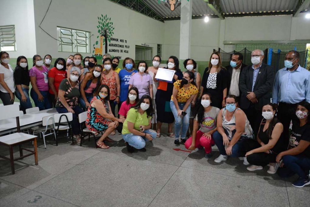 A Escola Municipal Maria Célia Ferraz foi o local escolhido para homenagear, na tarde desta quinta-feira (17), com uma moção de aplauso, a professora Hermelinda Costa (conhecida como tia Bila), uma das idealizadoras da escola. A homenagem, indicada pelo vereador Ricardo Babão e aprovada pela Câmara Municipal, contou com a presença da prefeita, Sheila Lemos, do secretário municipal de Educação, Edgard Larry e de assessores do governo.
