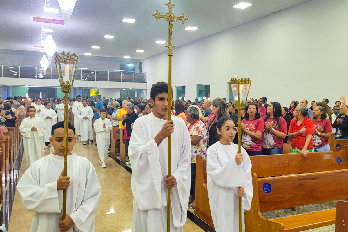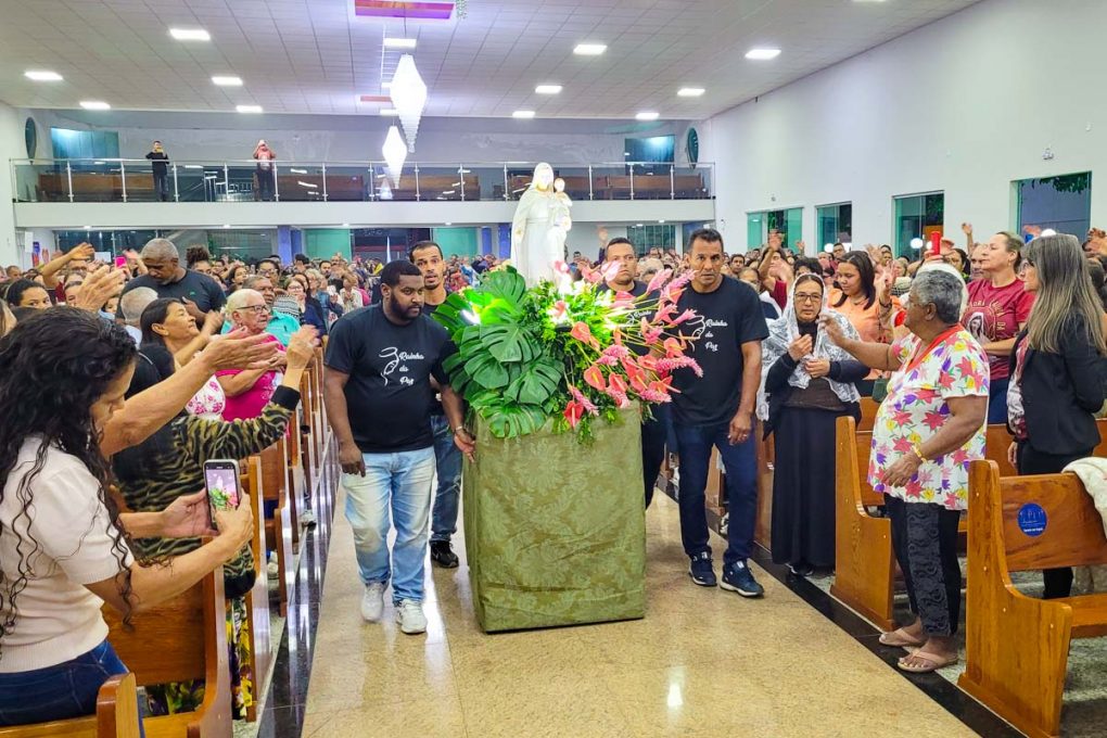 Na noite desta quinta-feira (18), a prefeita Sheila Lemos prestigiou a missa de abertura do novenário à Nossa Senhora Rainha da Paz, padroeira do bairro Patagônia. Neste ano, a celebração traz o tema “Nossa Senhora Rainha da Paz, vivemos nossa vocação missionária, dom e graça de Deus”.