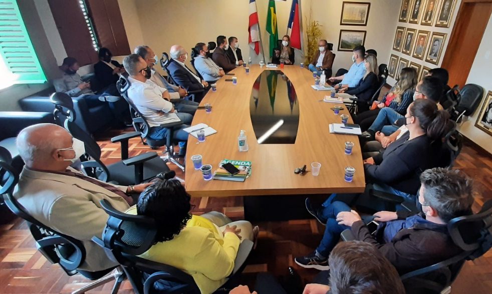 A prefeita Sheila Lemos reuniu o primeiro escalão da Prefeitura de Vitória da Conquista, na manhã desta segunda-feira (17), para uma avaliação do andamento das ações da administração e dos últimos acontecimentos políticos envolvendo o governo municipal. Na reunião, ocorrida no gabinete, a prefeita relatou sua última viagem à capital do estado, onde teve audiência com o governador Rui Costa a quem apresentou pautas do município nas áreas da saúde e da infraestrutura.