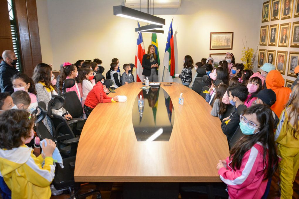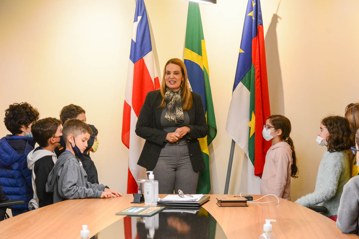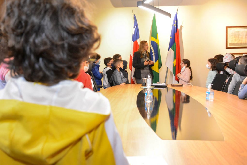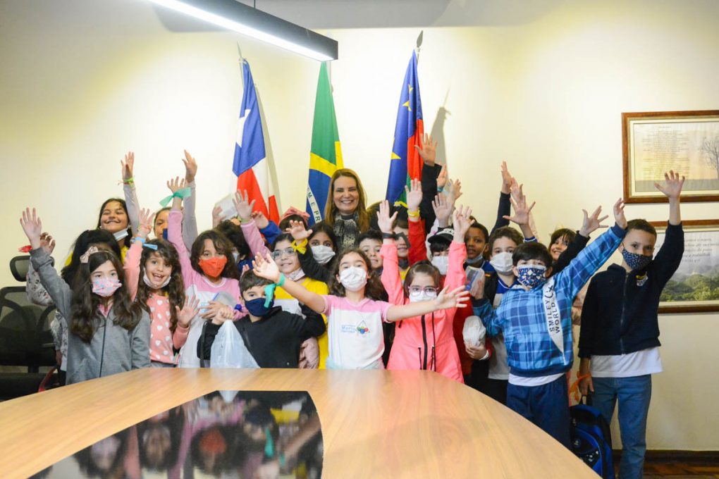 “Hoje é o dia em que meu gabinete está mais bonito porque vocês estão aqui. É uma alegria recebê-los”, afirmou a anfitriã ao receber os meninos e meninas para um bate-papo sobre a cidade. Na posição de entrevistadores, os alunos quiseram saber da prefeita sobre os projetos da gestão em áreas como esporte, meio ambiente e acessibilidade. Os maiores desafios ao assumir o cargo de prefeita e o que ela sonhava ser quando se tornasse adulta também estiveram na pauta.