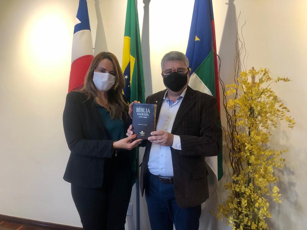 A prefeita falou da alegria de receber a Bíblia entregue pelo pastor Davi. “É o melhor presente que uma pessoa pode receber e tem um valor muito grande para mim”, agradeceu a gestora municipal.