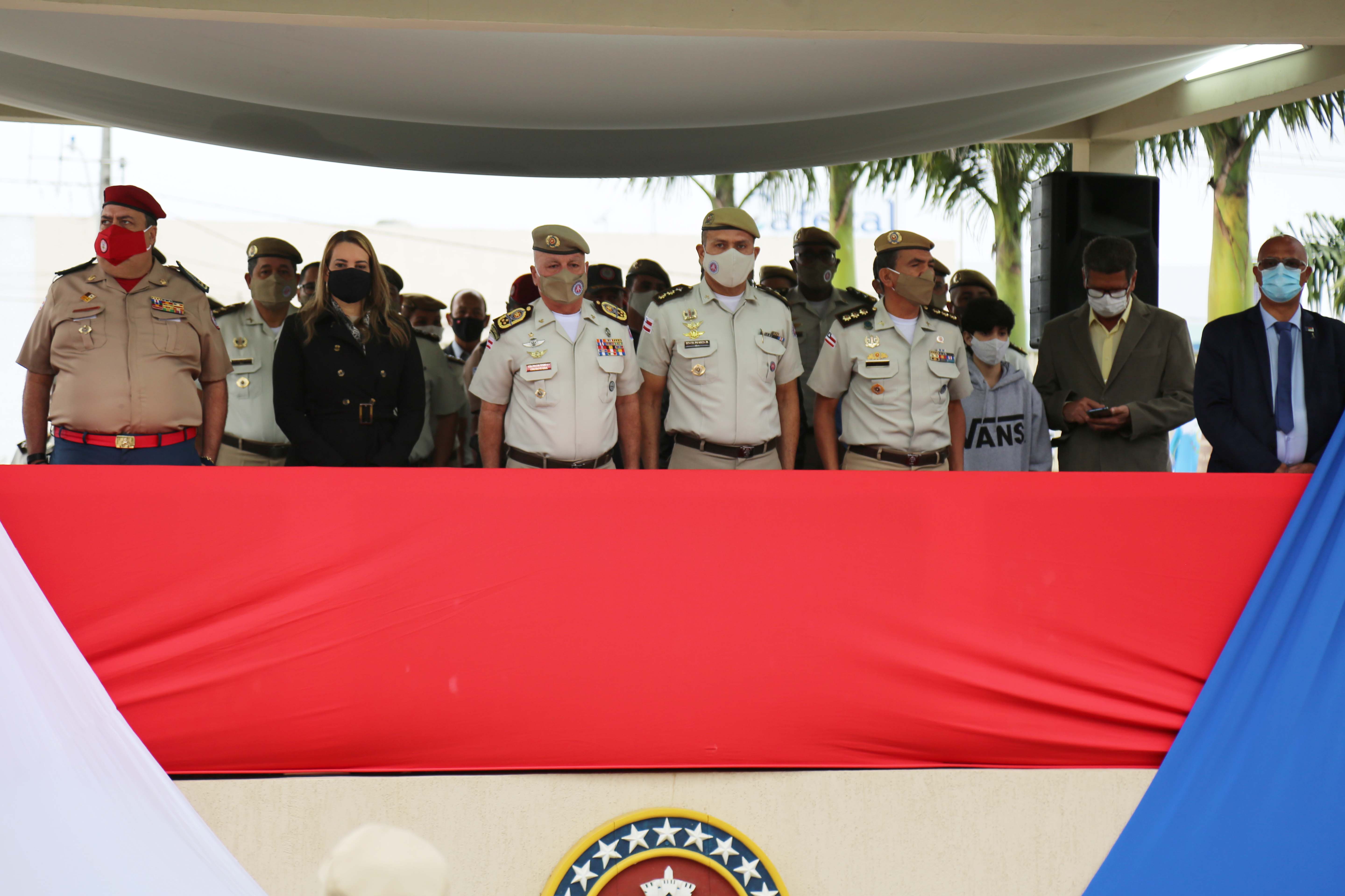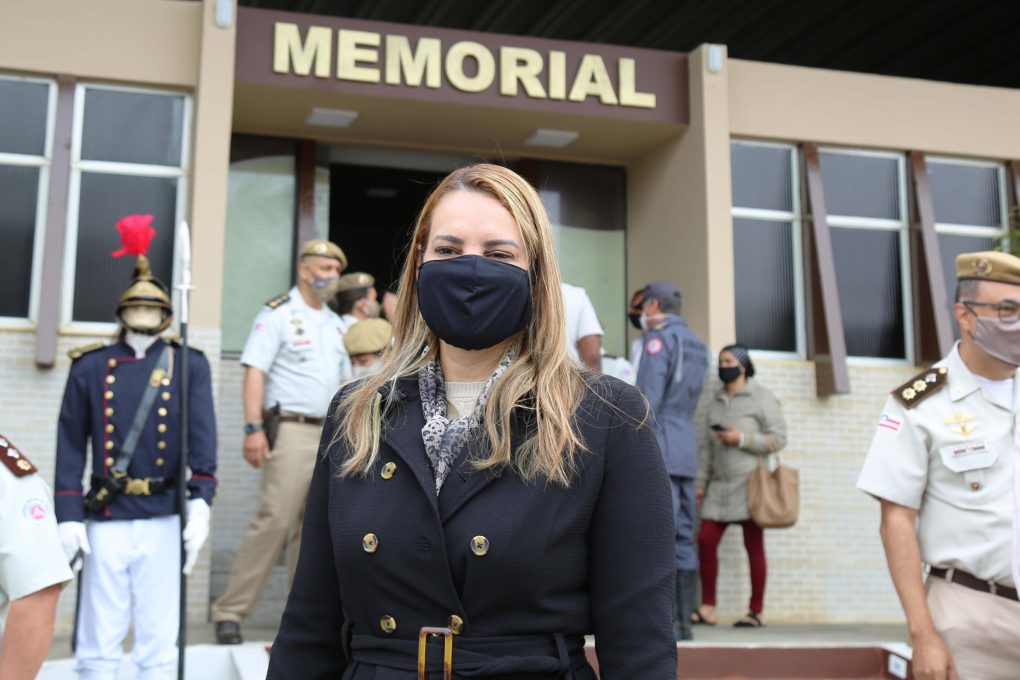 Na manhã desta quarta-feira (21), a prefeita Sheila Lemos participou da cerimônia em comemoração aos 50 anos do 9º Batalhão de Ensino, Instrução e Capacitação da Polícia Militar (PM). No evento foi inaugurado o Memorial Ten Cel PM Ref Ayrson Alves do Santos, que apresenta com fotos e documentos a história da corporação no município. Acompanhando a prefeita, estava o Chefe de Gabinete Civil Lucas Dias.