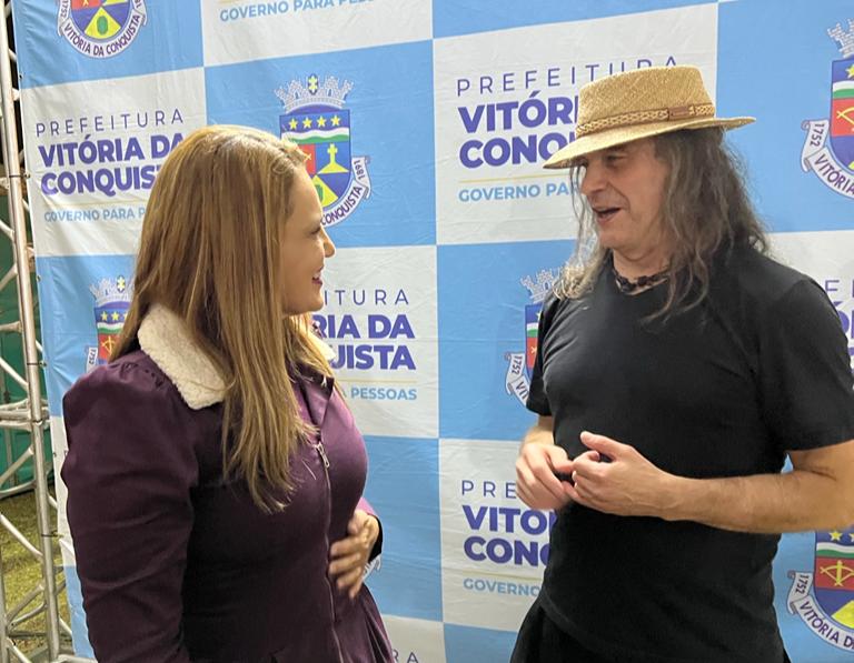 Após a apresentação belíssima, a prefeita foi pessoalmente parabenizar o músico que, com toda simpatia, agradeceu a gestora pela oportunidade de se apresentar no São João da Prefeitura de Vitória da Conquista.